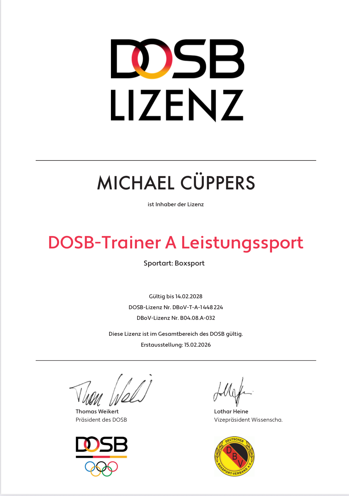A-Lizenz für den Combat Club: Headcoach Mike Cüppers besteht die höchste Boxtrainer-Prüfung am Olympiastützpunkt Heidelberg.